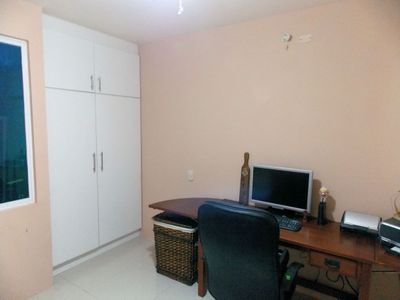 The third bedroom is a fully-equipped office space that includes a wood desk, leather office chair, Win7 Pro desktop computer with a 32-inch monitor, a printer, two scanners and a 3-unit wireless phone.