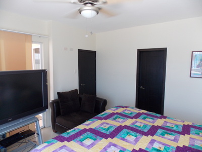 The master bedroom has a Stearns and Foster king bed, AC, a 55-inch Sony Bluray HDTV, views out to the pool and ocean and access to the private covered patio.