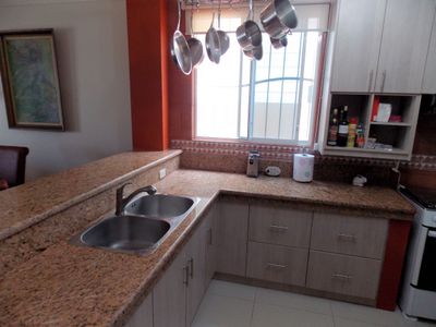 This is a 3BR/2BA condo in the Palm Beach condo in downtown Crucita, only steps away from the beach, from restaurants, and small stores for buying basic groceries and fresh seafood.